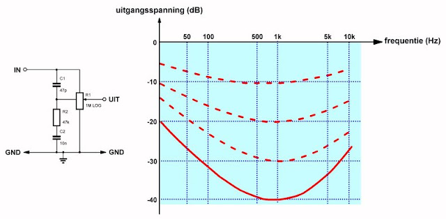 | Een loudness-filter met 20 dB en 40 dB verzwakking. (© 2023 Jos Verstraten) |